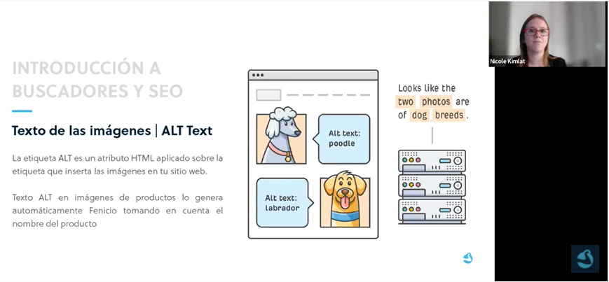 Nicole Kimlat -Project Manager de nuestro equipo- fue la encargada de llevar adelante este taller, en el que abordó sobre cómo realizar una investigación de palabras clave, por qué las URLs amigables son importantes para nuestros sitios, cómo crear una cuenta en Google Search Console, y cómo sacar jugo de un blog como herramienta para el posicionamiento orgánico, entre otras temáticas.