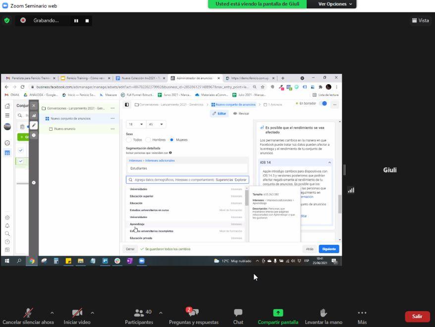Esta instancia estuvo a cargo de Giuliana Pastorino y Diego Granotich -eCommerce Managers de Fenicio-, que abordaron el paso a paso en la configuración de campañas publicitarias en Facebook e Instagram, de acuerdo al objetivo comercial fijado.