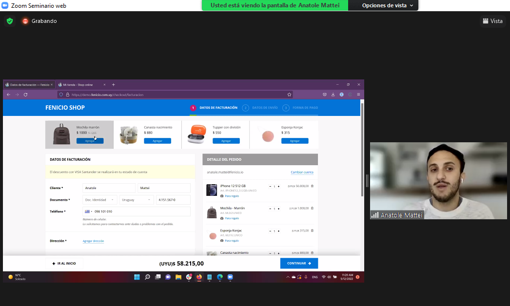 El segundo bloque de la capacitación estuvo a cargo de Anatole Mattei (líder técnico de Soporte de Fenicio) y Rocío Aguilera (asistente de marketing de Soporte de Fenicio), quienes exhibieron herramientas ofrecidas por nuestra plataforma de eCommerce, que pueden utilizar nuestros clientes para destacarse en eventos especiales.